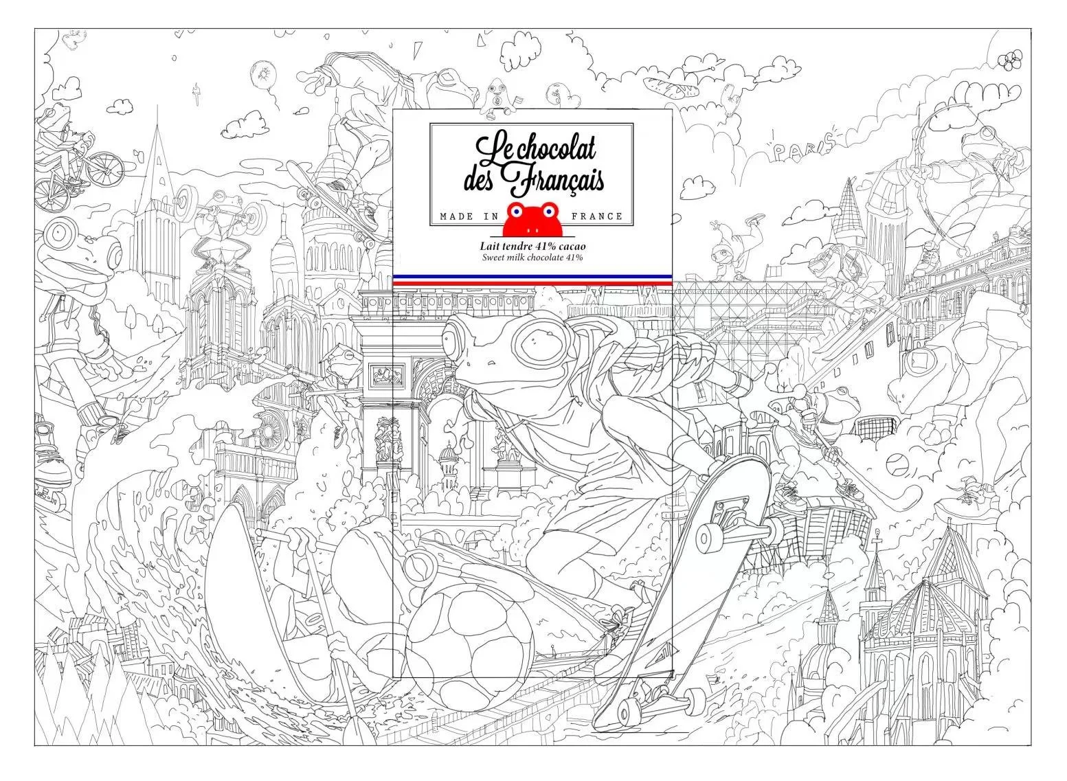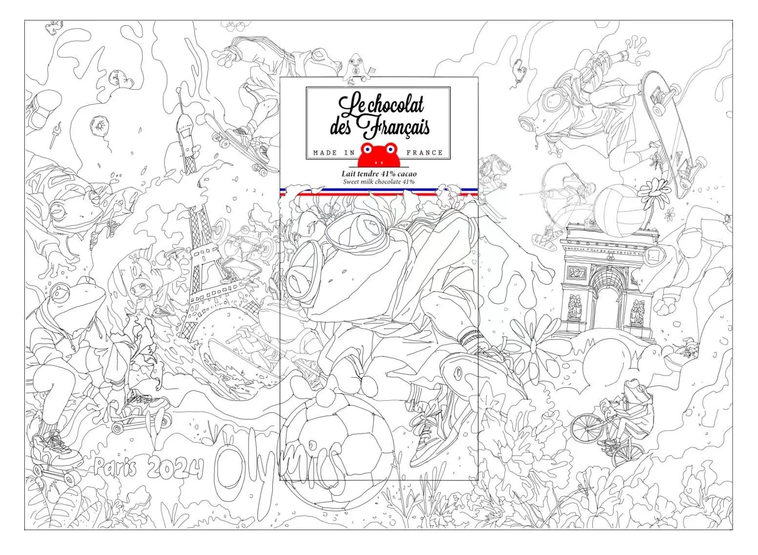 Le Chocolat des Francais is combined with the Paris 2024 Olympic Games, plus iconic landmarks such as the Eiffel Tower, the Seine and the gardens of Versailles. Special Olympic elements such as the torch relay, sporting events, opening ceremony and mascots will also be incorporated. In addition, the red frog, the distinctive emblem of this chocolate, will be the protagonist, replacing the characters in the image.
